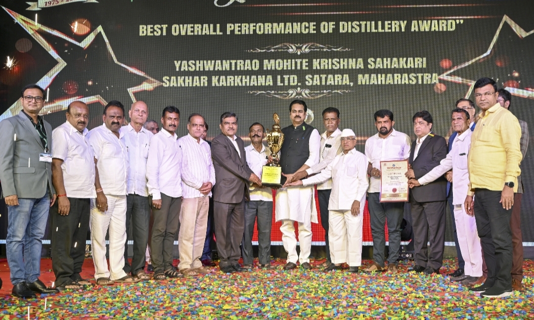 कृष्णा कारखान्याला सर्वोत्कृष्ट डिस्टीलरीचा राष्ट्रीय पुरस्कार प्रदान
